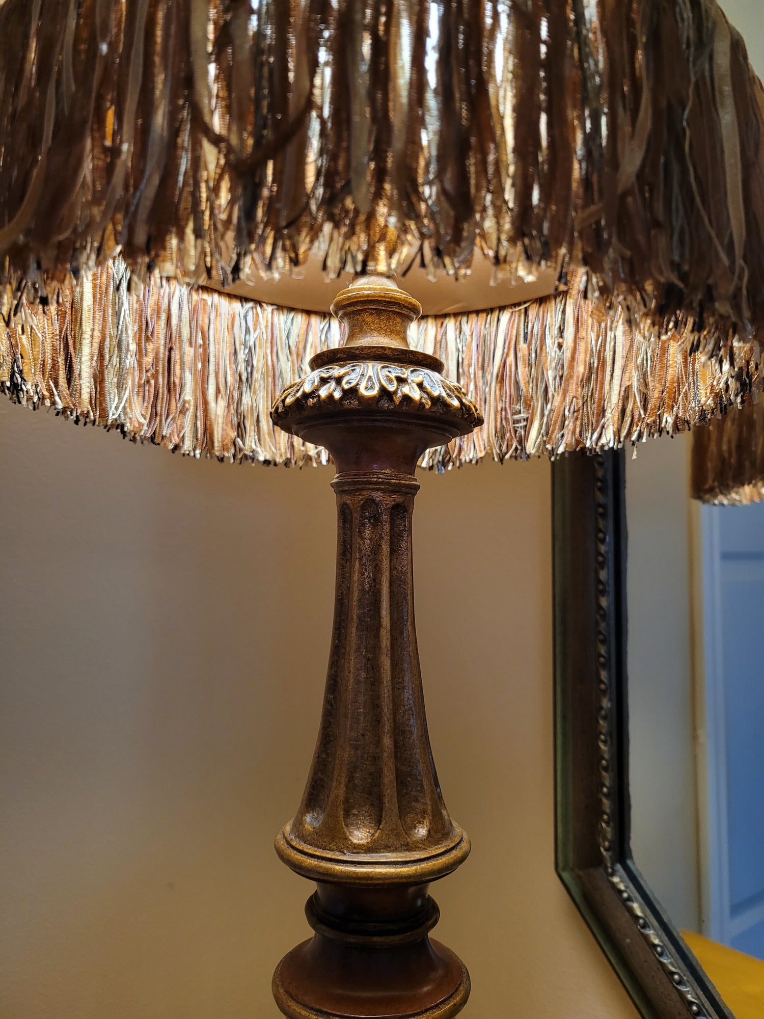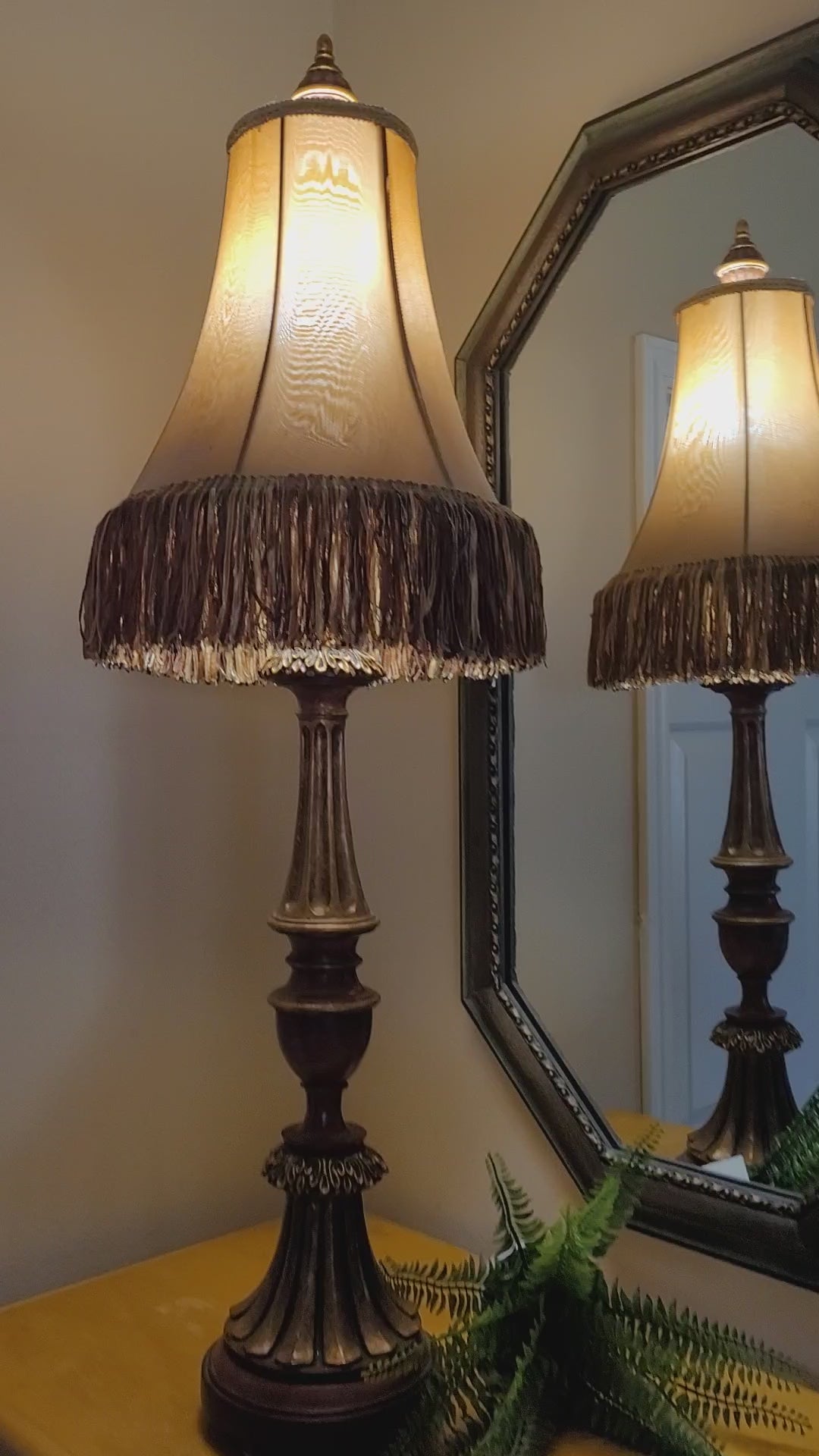Vintage Console Lamp with Fringed Shade