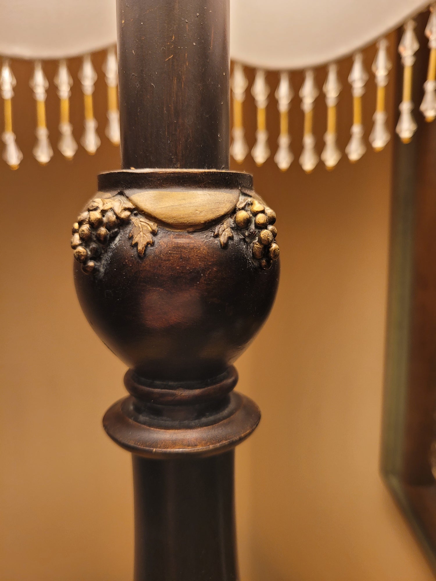Cast Pedestal Lamp with Fringed Shade