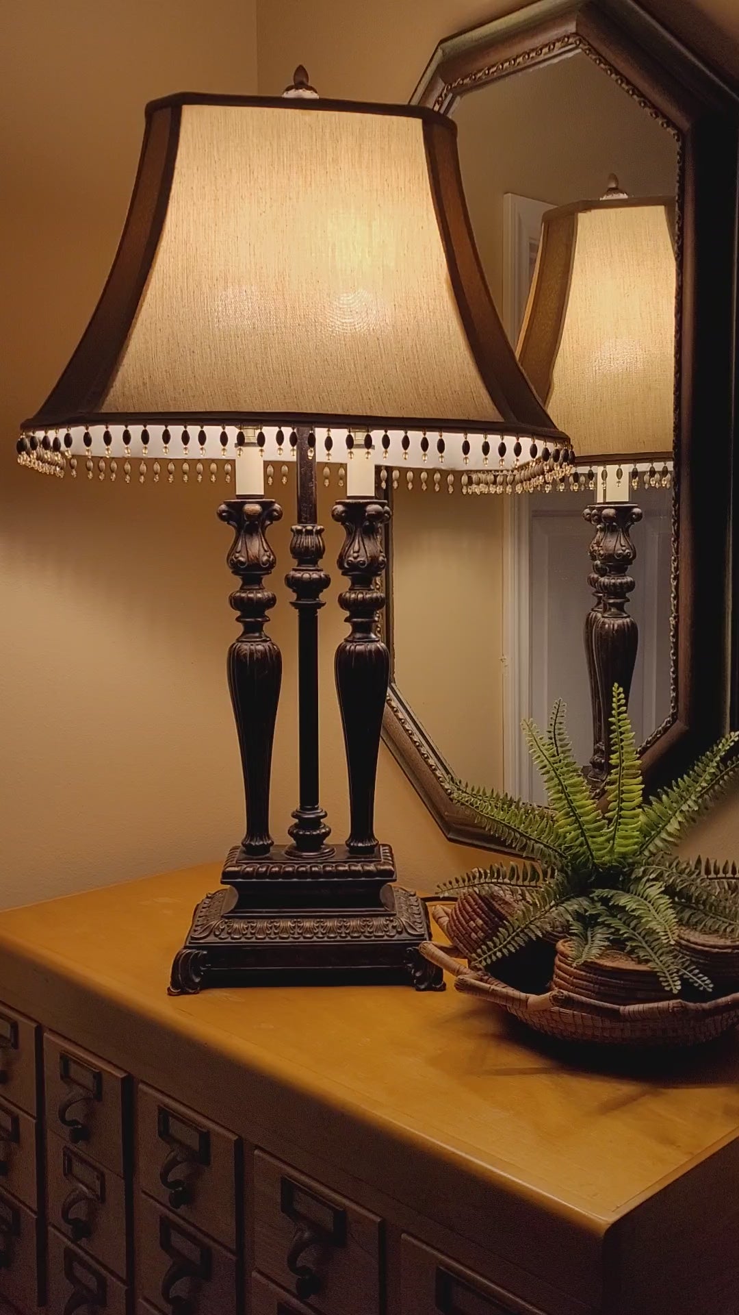Lamp measures 10" wide x 6.5" deep x 33" tall.